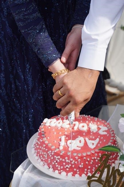 Historically, wedding cake cutting symbolized the couple’s first task together, and a precise guide ensures a smooth, symbolic moment. Printable diagrams often depict a tiered cake, illustrating how to start from the center and work outwards, creating wedge-shaped slices.