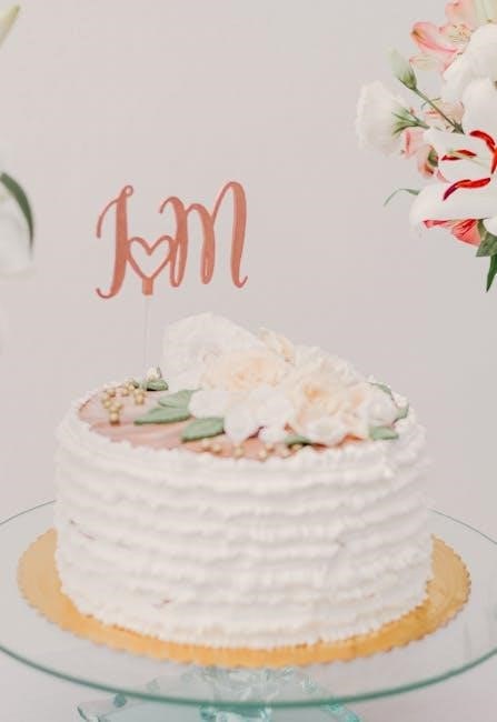 Guides provide a quick reference for estimating how many guests each tier will accommodate, simplifying the planning process. Some resources offer detailed tables correlating pan size with approximate servings. Utilizing these printable charts ensures accurate calculations, preventing shortages or excessive leftovers; Proper tier-by-tier assessment, facilitated by these guides, leads to a perfectly portioned and beautifully presented wedding cake.